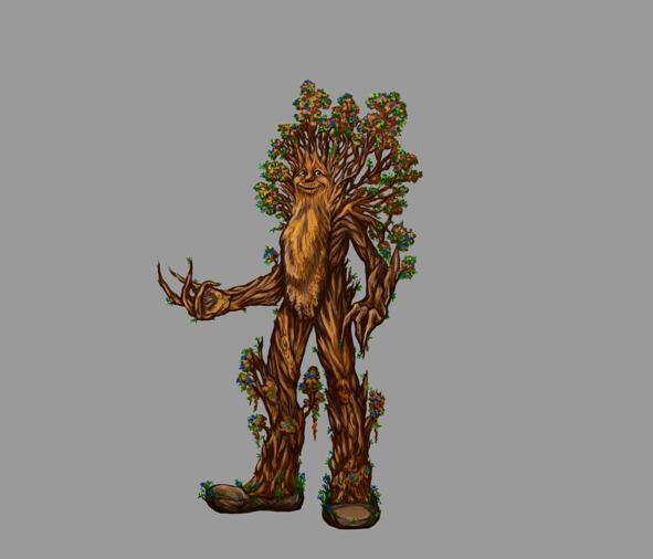 Его огромные, сверкающие голубые глаза излучали лазурный эльфийский свет, отдавали теплом и холодком одновременно. Вместо рук — ветки с гибкими и тонкими веточками-пальцами на конечностях. Ноги — массивные, покрытые корой дерева, разгибающиеся в коленях, обутые в тяжелые деревянные башмаки-колодки, грубо вырезанные из дерева, которые по краям уже обрастают маленькими торчащими веточками с молодыми листочками. Улыбка у этого живого дерева была широкой и теплой, словно у мамы, которая смотрит на свое малое дитя с заботой и нежностью, согревая и утешая в самые непростые времена, или, когда ребенок просто заблудился, ищет выход и никак не может его найти, плутая в трех соснах или в лабиринте жизней.