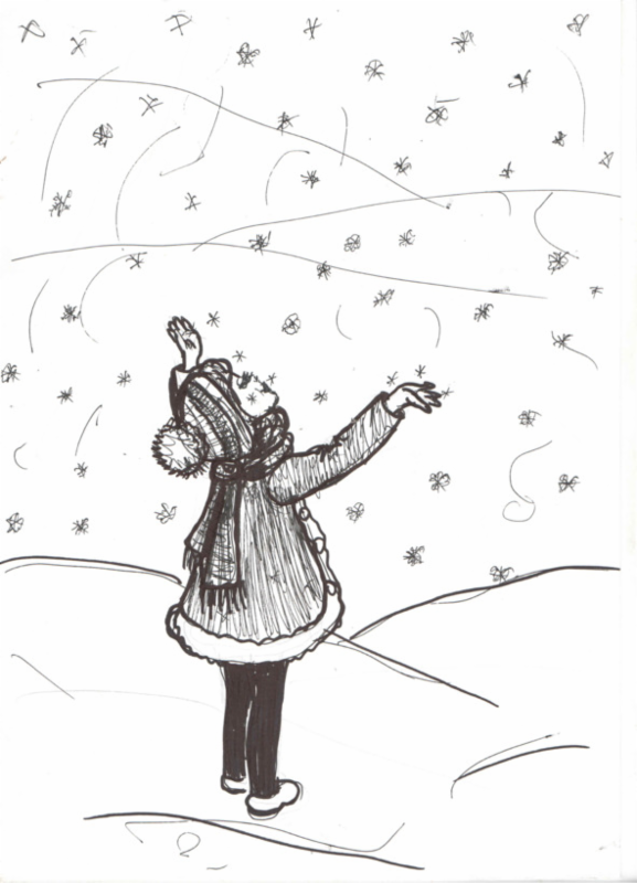 Там, далеко — далеко, черно — синяя вечность из которой медленно, плавно, словно по невидимой леске скользят снежинки.