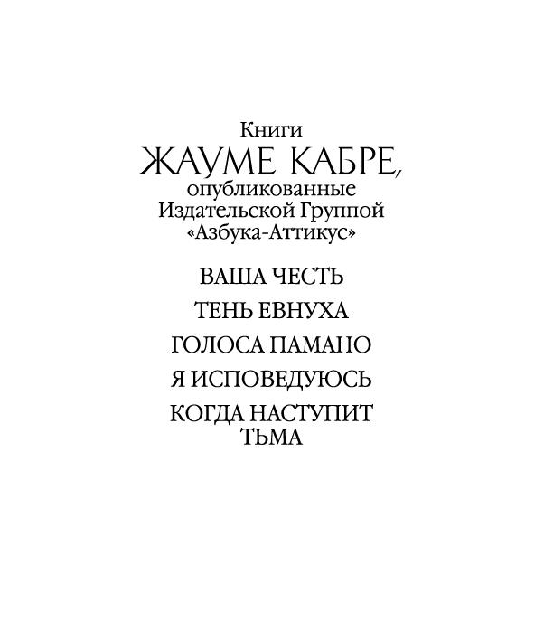 Когда наступит тьма : рассказы / Жауме Кабре ; пер. с каталан. А. Гребенниковой. — М. : Иностранка, Азбука-Аттикус, 2022. — (Большой роман).