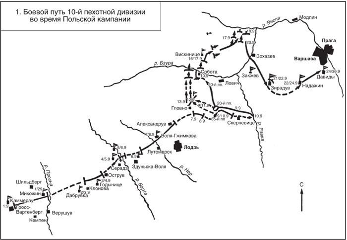 Итак, необходимо обеспечить оборону Гловно. Туда следует направить отдельные мобильные соединения дивизии: 10-й противотанковый дивизион (без 3-й роты, находящейся под Скерневице) и 3-ю (моторизованную) роту 10-го саперного батальона.