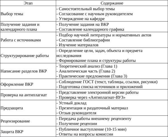 Таблица 1 — Этапы подготовки ВКР, дипломной работы