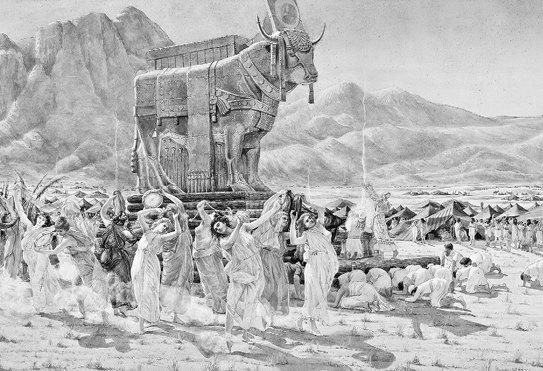 Разумеется, раскол царства неблагоприятно отразился на Иерусалиме. С одной стороны, город потерял в статусе. Быть столицей двух или двенадцати колен – это, как говорят в Одессе, две большие разницы. С другой стороны, в иудейском мире у Иерусалима появился сильный конкурент – город Сихем, столица Северного Израильского царства. Кроме того, царь Иеровоам восстановил святилища в Вефиле (Бет-Эле) и Дане, считавшиеся у северян аналогами Иерусалимского храма. В обоих святилищах были установлены золотые тельцы, олицетворявшие подножие Господнего трона. Золотые тельцы стали своеобразным вызовом старым традициям иудеев, вызовом Иерусалимскому храму, в котором их быть не могло[27].