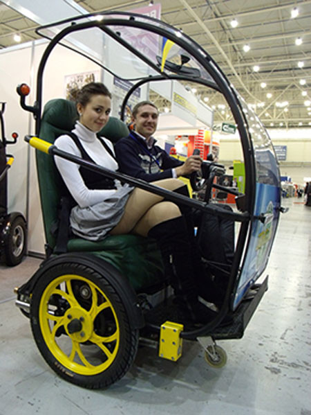 Прошло время, наступил 2011 год. Осенью в Киеве была очередная выставка. На ней мы представляли наш электромобиль Шмель. Желающие подходили, мы их катали в павильоне выставочного зала, рассказывали об устройстве механики, электроники. Подходили и иностранцы, катались, фотографировались…