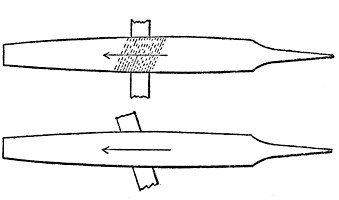 On the First Use of the File Page 48The First Test. Filing an Irregular Block. Filing a Bar Straight. Filing Bar with Parallel Sides. Surfacing Off Disks. True Surfacing. Precision Tools. Test of the Mechanic. Test Suggestions. Use of the Dividers. Cutting a Key-way. Key-way Difficulties. Filing Metal Round. Kinds of Files. Cotter-file. Square. Pinion. Half-round. Round. Triangular. Equalizing. Cross. Slitting. Character of File Tooth. Double Cut. Float-cut. Rasp Cut. Holding the File. Injuring Files. Drawing Back the File.