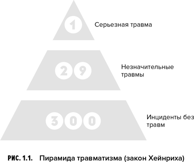 Закон Хейнриха гласит: на каждый несчастный случай на рабочем месте, повлекший тяжелые последствия, приходится 29 случаев получения легких травм и 300 потенциально опасных происшествий без последствий (рис. 1.1).