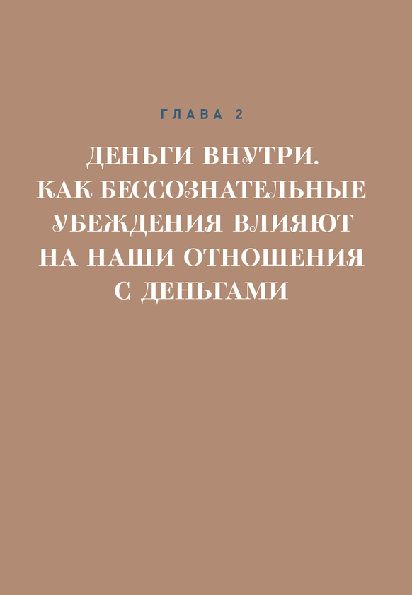 По моему глубокому убеждению, большая часть того, что определяет наш финансовый успех, нашу гармонию в отношениях с деньгами, нашу склонность «грести лопатой» или скромничать, «пускать на ветер» или складывать под подушку, находится внутри нашей собственной головы.