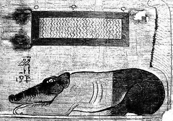 Прорисовка фрески с изображением божества в облике коровы