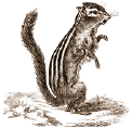 Сибирский бурундук, или полосатая сибирская земляная белка (T. striatus), значительно меньше и неуклюжее обыкновенной белки (длина — 20 см, хвост — 10 см), с продолговатой, усаженной редкими усами головой. Короткий, жесткий мех его имеет общий желтоватый фон, по которому идут на спине пять черных полос; живот — беловато-желтый 〈…〉. Сибирский бурундук обитает чаще всего в кедровых лесах, в подземных норах, куда залегает на зиму, обеспечив себя запасами зерна и орехов. Звучный крик его напоминает жалобный стон совы-зорьки… В лазанье бурундуки уступают белкам, но зато превосходят их в беганье. (А. Брэм. Жизнь животных, т. 1.)