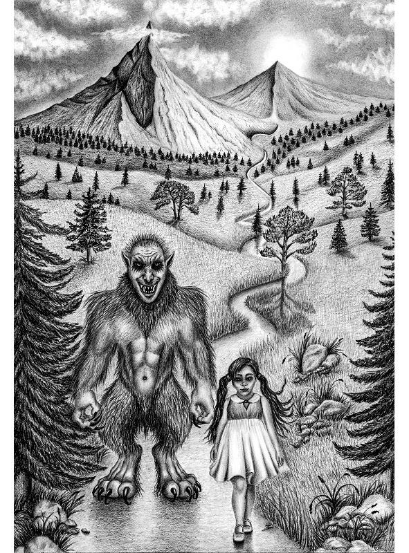 Далеко-далеко, в Стране двух гор, в деревянном домике жила маленькая девочка. Девочка жила совсем одна. Папу и маму девочки съело огромное, страшное Чудище. Оно хотело съесть и девочку, но та была такая маленькая, что Чудище решило подождать, пока девочка подрастёт, чтобы потом уже и съесть ее.