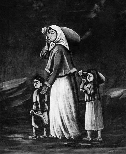 Нико Пиросмани. Крестьянка с детьми идет за водой