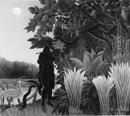 При всей загадочности натуры Руссо, поражавшей современников смесью простодушия и лукавства, подчас граничившей с чем-то дьявольским, при обилии пустых мест в биографии, обросшей легендами и потому не дающей ясного ответа о домашнем образовании, юношеских увлечениях и серьезных занятиях зрелого возраста, вплоть до выхода на пенсию после канцелярской работы в парижской таможне, при всех многочисленных контактах с художниками-профессионалами, как с ретроградами, так и новаторами, несмотря на регулярное участие в ежегодных выставках парижских Салонов и, наконец, невзирая на свои неизменные прогулки по Лувру, – Руссо-Таможенник остается для нас прежде всего «наивным» художником, маленьким клерком по роду занятий и мелким буржуа по социальному положению. По данным биографии, самоучка во всем – в литературных занятиях, на скрипке и в живописи – он неожиданно, как черт из банки, «выскочил» перед изумленными художниками с Монмартра и членами жюри Независимых. С нищей разноплеменной молодежью Бато-Лавуар роднил его демократизм, плебейская независимость квартала Плезанс, в котором жил Руссо и который запечатлен на его полотнах. Он любил жителей своего квартала, мелких лавочников и таких же, как он, пенсионеров; кормил их и учил бесплатно музыке и рисованию. Кем бы ни воображал себя Руссо, в действительности он испытывал родственные чувства к простым людям, живущим вне шума Больших Бульваров и Парижской Оперы, вдали от несущихся с большой скоростью экипажей, от аристократических салонов и гостиных, модных курортов, которые так привлекали импрессионистов и ошеломляли попадавших впервые во Францию молодых художников из окраинных стран Европы. Муза Руссо бродила по тихим парижским улочкам, отдыхала в уединенных, почти безлюдных в дневное время садах, таких как парк Монсури, куда еще в середине прошлого века не рекомендовали ходить дамам из приличных семей, поскольку это далеко, опасно и можно увидеть или услышать что-нибудь непристойное. А с холмов парка Монсури, куда перевезли в 1860-х годах со Всемирной выставки нелепый павильон в виде эклектического палаццо и открыли в нем обсерваторию, Руссо мог видеть луга и огороды, сады и мельницы парижских предместий.