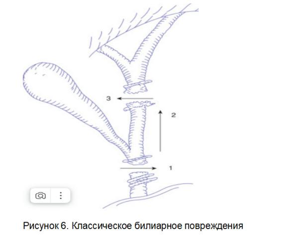 Strasberg SM, Gouma DJ в работе «Extreme’ vasculobiliary injuries: association with fundus-down cholecystectomy in severely inflamed gallbladders. HPB. 2012; 14: 1–8) описывают классический вид повреждения как наиболее частый вариант сосудисто-билиарной травмы.