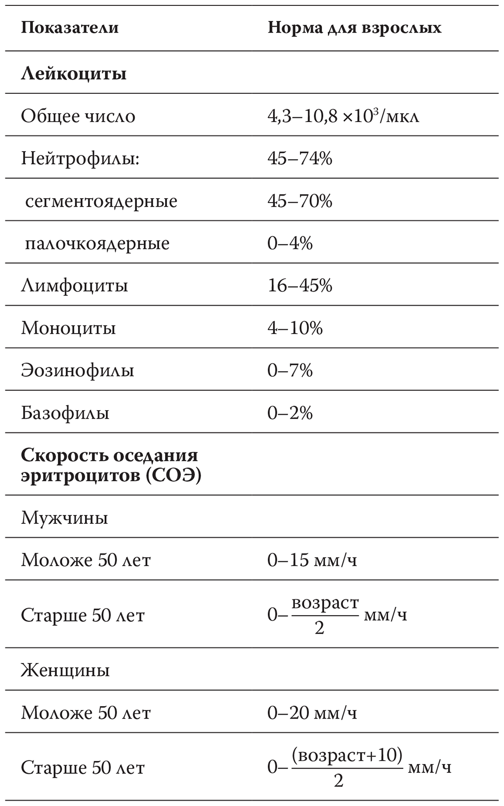 Если бы я взялся написать на эту тему книгу для врачей, это, пожалуй, получился бы увесистый том страниц на 500, а может быть, и больше. Дело в том, что заболеваний, которые сопровождаются повышением уровня лейкоцитов (лейкоцитоз) или снижением уровня лейкоцитов (лейкопения), очень много. Ну а уж выяснять, откуда у пациента взялось повышение скорости оседания эритроцитов (СОЭ), – это высший пилотаж для любого терапевта. Разумеется, я в этом разделе не смогу рассказать обо всех болезнях, сопровождающихся изменением этих показателей, но основные причины мы все же обсудим.
