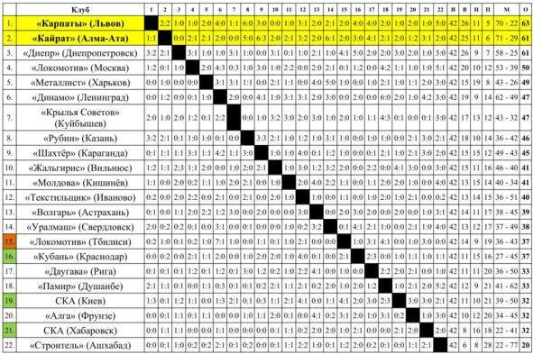 — Высшую группу Класса «А» покинули «Черноморец» (Одесса), «Торпедо» (Кутаиси) и «Спартак» (Орджоникидзе).