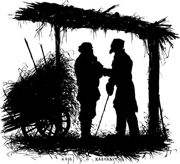 Лёгкий порыв ветерка разбудил меня… Я открыл глаза и увидел Калиныча: он сидел на пороге полураскрытой двери и ножом вырезывал ложку. Я долго любовался его лицом, кротким и ясным, как вечернее небо. Г-н Полутыкин тоже проснулся. Мы не тотчас встали. Приятно после долгой ходьбы и глубокого сна лежать неподвижно на сене: тело нежится и томится, лёгким жаром пышет лицо, сладкая лень смыкает глаза. Наконец мы встали и опять пошли бродить до вечера. За ужином я заговорил опять о Хоре да о Калиныче. «Калиныч – добрый мужик, – сказал мне г. Полутыкин, – усердный и услужливый мужик; хозяйство в исправности, одначе, содержать не может: я его всё оттягиваю. Каждый день со мной на охоту ходит… Какое уж тут хозяйство, – посудите сами». Я с ним согласился, и мы легли спать.