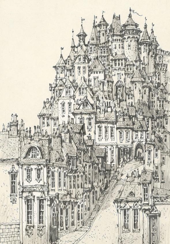 С верхней точки — с площади, на которой стоял старинный замок, являвшийся вертикальной доминантой города, — открывалась захватывавшая дух панорама «архитектуры крыш» — нагромождение мансард, труб, дымоходов, балконов — словно вылезавших по стенам домов, как вьющиеся растения и «расталкивавших локтями» друг друга в попытке отвоевать себе местечко поближе к солнцу.