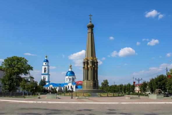 Монумент Славы (Героям Отечественной войны 1812 г) считается главной достопримечательностью (на переднем плане на фото), но собор Казанской иконы Божией Матери старше.