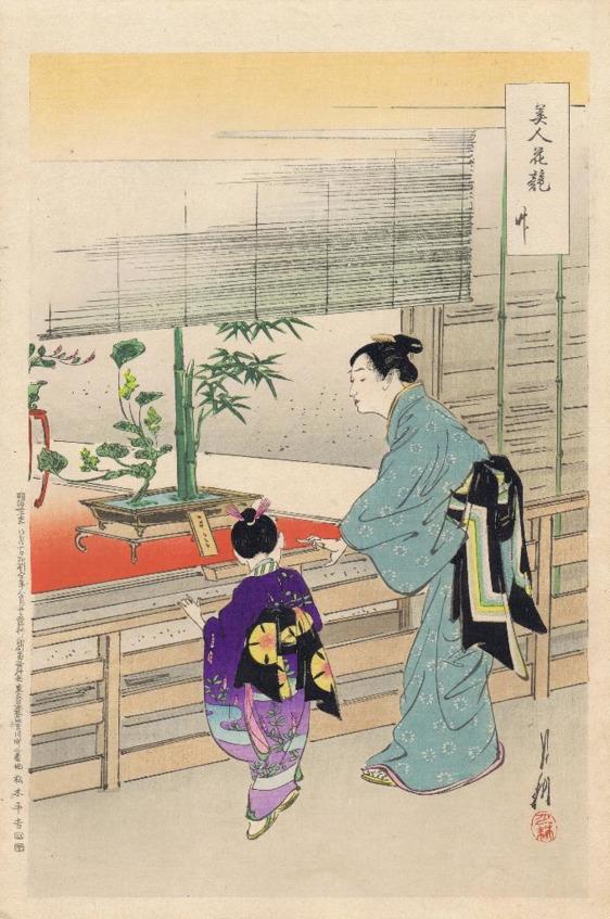 Красуні та ікебана з бамбуком. Автор: Огата Гекко, 1896 р.