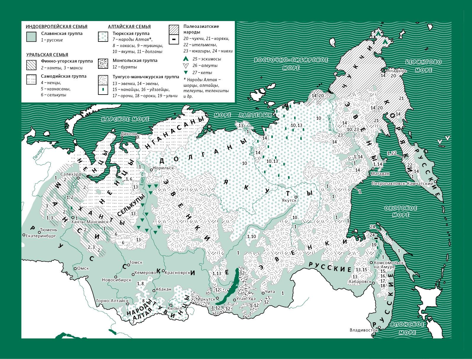В соответствии с этнолингвистической классификацией, коренные народы Сибири и Дальнего Востока являются представителями следующих языковых семей и групп[2].
