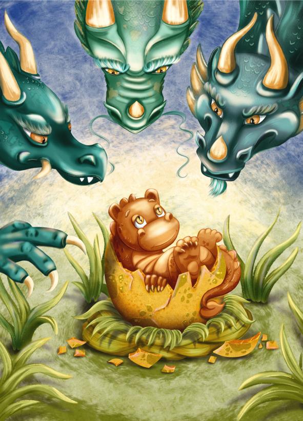Высоко-высоко в горах из солнечно-желтого яйца вылупился дракончик. Взрослые сородичи уже давно ожидали его появления: ведь детеныши у них рождаются очень-очень редко, поэтому каждого малыша ждут с большим нетерпением. Наконец, яйцо завозилось, покатилось, раскололось и….