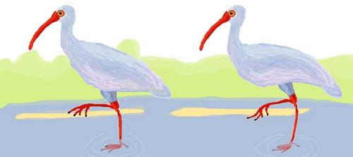 Щоліта у ібісів починалася линька. Вони скидали свій гніздовий наряд і знову ставали білими. Навіщо вони на період гніздування надягали цей темненький одяг? Я думаю, щоб їх було важче виявити, коли вони сидять на гніздах, висиджуючи пташенят. У темному оперенні вони зливаються з гілками, навколишньою рослинністю. Одягати сліпучий білий наряд в цей період зовсім ні до чого, та й небезпечно.