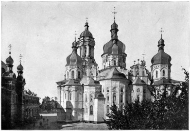 Together with the religion which he imported from Byzantium, "Prince-Saint" Vladímir naturally imported, also, priests, architects, artists for the holy pictures (ikóni), as well as the traditional style of painting them, ecclesiastical vestments and vessels, and—most precious of all—the Slavonic translation of the holy Scriptures and of the Church Service books. These books, however, were not written in Greek, but in the tongue of a cognate Slavonic race, which was comprehensible to the Russians. Thus were the first firm foundations of Christianity, education, and literature simultaneously laid in the cradle of the present vast Russian empire, appropriately called "Little Russia," of which Kíeff was the capital; although even then they were not confined to that section of the country, but were promptly extended, by identical methods, to old Nóvgorod—"Lord Nóvgorod the Great," the cradle of the dynasty of Rúrik, founder of the line of sovereign Russian princes.