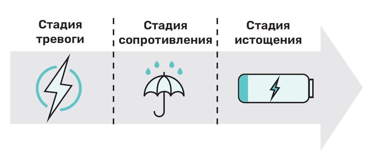 2. Стадия сопротивления — когда организм задействует все свои приспособительные реакции, чтобы вернуться к новому состоянию равновесия.