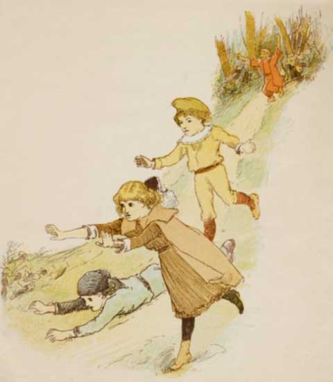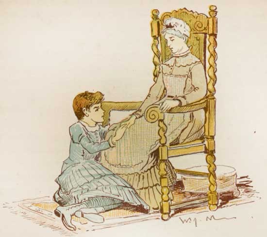 "Fifine, my child," it said, "you have not come to the little gate to wish me good morning," and looking up, Fifine saw a tall figure, all dressed in black, standing some way down the path. It was her kind friend and neighbour, the old curé or village clergyman, whose house was at the other side of the high garden wall. In general Fifine was delighted to see him, but this morning she walked towards him slowly, making a sort of pretence that Mimi was too heavy for her.