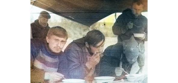 Питались мы на улице под натянутым большим тентом за грубо сколоченном столом и лавками по бокам. Комарье слеталось на горяченькое и густо сдабривало и первое и второе. Не уследишь — всю поверхность миски усеют, «как слоем черной саранчи». Приходилось сгребать их ложкой и сбрасывать на землю. Приходилось еще низко наклоняться над миской, чтобы ограничить их от сдабривания пищи их телами.