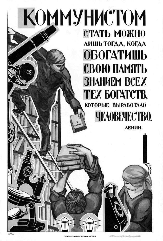 «Коммунистом стать можно лишь тогда, когда обогатишь свою память знанием всех тех богатств, которые выработало человечество» (Ленин). Александр Никитич Парамонов (1874–1949), плакат, 1925.