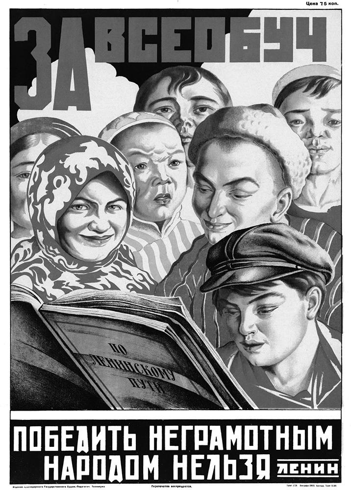 «За всеобуч. Победить неграмотным народом нельзя» (Ленин). Неизвестный художник, плакат, 1931.
