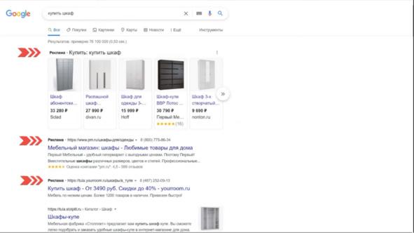Такой формат становится доступен, если у вас есть каталоги на сайте. Эти каталоги можно преобразовать в так называемый товарный фид. Программисты подскажут, как это сделать, когда у вас возникнет такая потребность. Просто уясните, что это все тот же каталог, но подходящий под форматы объявлений Гугл и Яндекс. Поверьте, этот формат рекламы очень эффективен. Когда пользователь уже интересовался определенным товаром, то высока вероятность, что он его купит в ближайшее время. За такого лида нужно бороться.