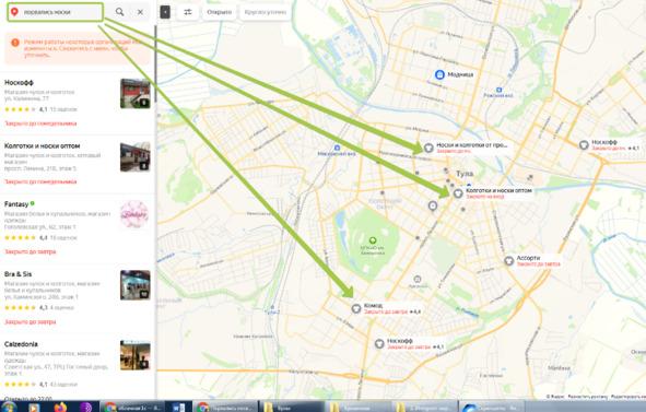 Надо ли говорить, почему важно размещаться в электронных справочниках, картах, информационных порталах, отзовиках? Это тоже часть поискового маркетинга, и она помогает пользователям находить ваш продукт и информацию о вашей компании. Многие после того, как нашли нужный товар или услугу на вашем сайте, ищут информацию о вас, о вашем бренде. А есть и такие, кто ищет, где можно что-то купить поблизости. Поисковые системы настолько поумнели, что вы можете написать, что у вас случилось, а вам предложат, что нужно с этим делать. Например, по запросу «порвались носки» вам покажет рядом магазин колготок или ателье.