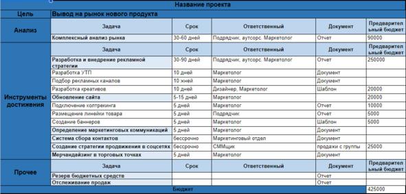 Забудьте про него. Он бесполезный. Подойдет, максимум, для курсовой студента факультета менеджмента. Основная проблема таких планов — они отображают только задачи, но не дают понимание, на основании чего их поставили, и к каким измеримым показателям должно привести их выполнение.
