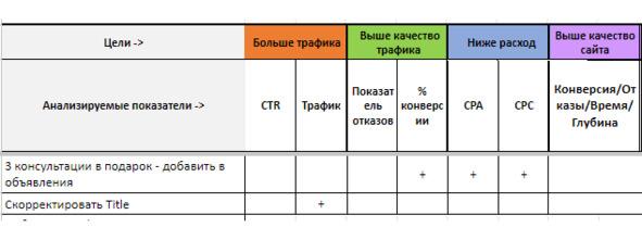 «Но где задачи?», спросите вы. А задачи уже будут ставиться на основе требуемых показателей, которые надо улучшить. В своей работе я использую следующую матрицу.