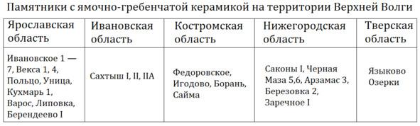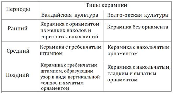 В Верхнем Поволжье учёными выделено три археологические культуры: верхневолжская (ВВК), валдайская (ВК) и волго-окская (ВОК). Археолог Крайнов Д. А., открывший верхневолжскую культуру, как и многие его последователи, считают памятники валдайской и волго-окской культур локальными вариантами первой.