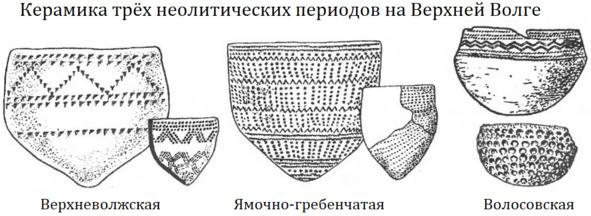Верхневолжская культура, датируемая VI–III тыс. до н. э. сформировалась на основе мезолитической бутовской культуры, её называют субнеолитической, т. е. население ВВК не перешло к сельскому хозяйству, в отличие от юго-восточных культур неолита, а занимались собирательством, охотой и рыболовством.