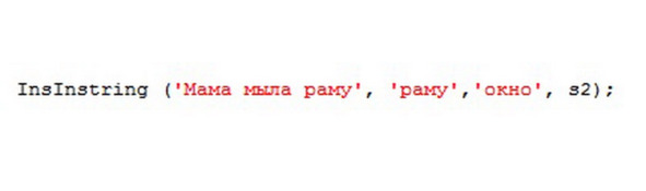 Далее, говоря об обработке строковых данных нам регулярно будет требоваться процедура замены подстроки в строке, как приведенная ниже InsInString: