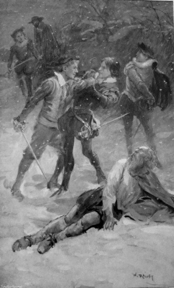 Timothy disarmed the fellow, and with a forwardthrust pierced him in the chest