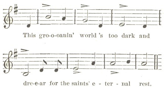 Anthony’s work would have puzzled a casual on-looker. Ten stout wires were stretched between two trees, fifteen or twenty feet apart, and each group of five represented the lines of the musical staff. Wooden bars crossed the wires at regular intervals, dividing the staff into measures. A box with many compartments sat on a stool beside him, and this held bits of wood that looked like pegs, but were in reality whole, half, quarter, and eighth notes, rests, flats, sharps, and the like. These were cleft in such a way that he could fit them on the wires almost as rapidly as his musical theme came to him, and Lyddy had learned to transcribe with pen and ink the music she found in wood and wire. He could write only simple airs in this way, but when he played them on the violin they were transported into a loftier region, such genius lay in the harmony, the arabesque, the delicate lacework of embroidery with which the tune was inwrought; now high, now low, now major, now minor, now sad, now gay, with one thrilling, haunting cadence recurring again and again, to be watched for, longed for, and greeted with a throb of delight.