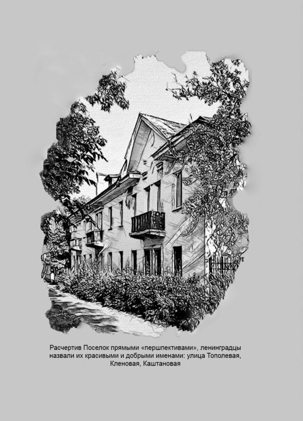 Расчертив Поселок прямыми «першпективами», ленинградцы назвали их красивыми и добрыми именами: улица Тополевая, Кленовая, Каштановая, Правды (не имени сановной большой газеты, а просто — правды). На улицах появились 2-этажные дома на восемь отдельных квартир с паркетом, газом и ваннами. Квартиры были небольшими, поэтому ванны устанавливали прямо в кухнях. Под окнами, словно привет из Летнего сада, добротно обосновались семейные палисадники. Уже не прежние укропно-морковные грядки (блокадные и спасительные), но целые цветники, которые охорашивали старую поселковую палитру крупными мазками гладиолусов, каплями георгинов и многоточием турецкой гвоздики.