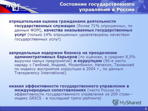 - 1.3.Благоприятная среда управленческими и административными процессами, опыт государственного управления РФ