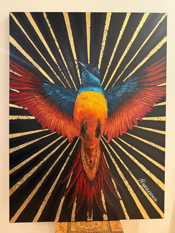 Картина «Пробуждение» написана в самый трансформационный этап моей жизни. Она наполнена той энергией. Я вложила в нее глубокий смысл: птица олицетворяет свободу и стремление к высоте, символизирует освобождение от оков, преодоление трудностей и исполнение заветных мечтаний. Она выглядит, как посланец, несущий весть о новых возможностях и переменах.