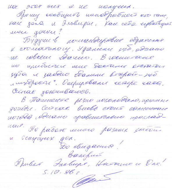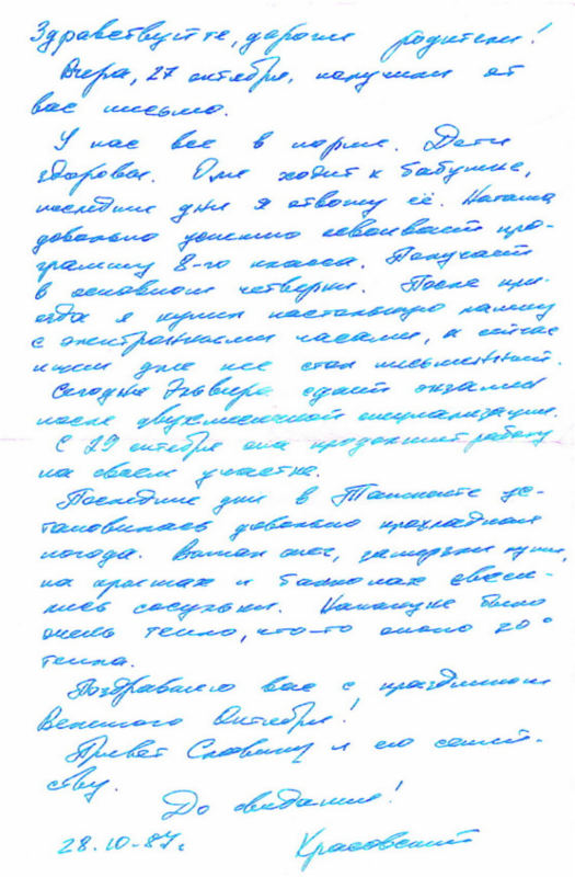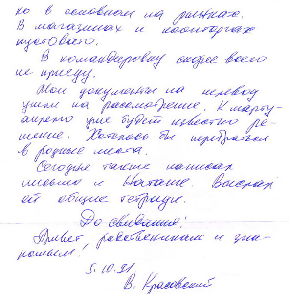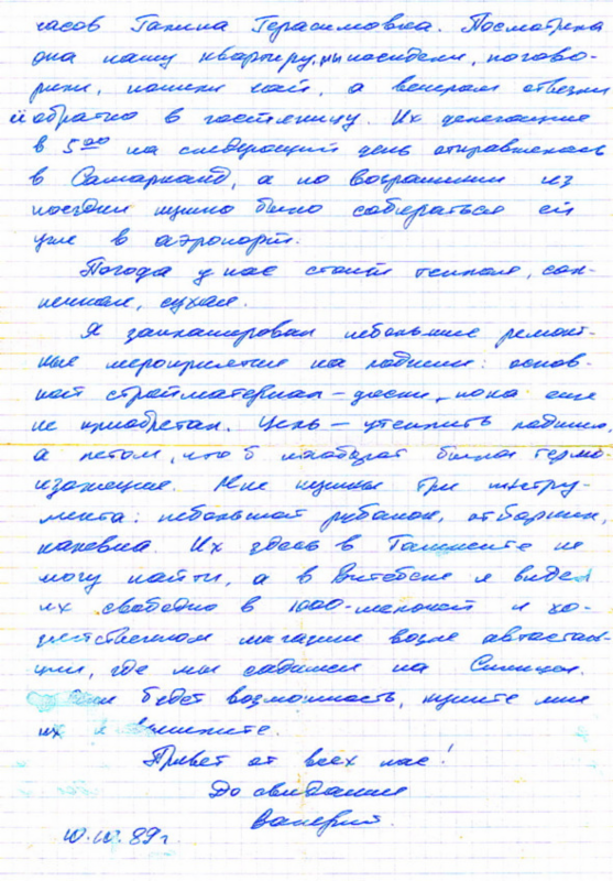 Через месяц наше действующее лицо получило извещение с железной дороги о прибытии контейнера с домашними вещами. Еще месяц ушел на поиск съемной квартиры. Наконец в махале, состоящей из частных одноэтажных домиков и уютных небольших двориков, ему удалось у одинокой пожилой женщины, у которой год назад умер муж, снять за умеренную цену просторное помещение. По осени приехала семья из сырости родных мест в солнечный недоступный холодным ветрам севера город, где было по-летнему тепло. Омрачало немного жизнь предупреждение хозяйки о том, что во дворе обитает змея, которая, по ее словам уже впала в зимнюю спячку. Однако, не дожидаясь пробуждения этого существа пустыни, в апреле семья Станислава Андреевича радостно переехала в другое жилье неподалеку от аэропорта. Жилое помещение было предоставлено квартирно-эксплуатационной частью на период убытия хозяев в заграничную командировку.
