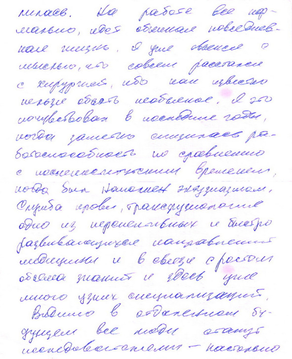 — Мы ждали нового человека. Предыдущий начальник станции переливания крови уволился в запас. Перед вами прибыл подполковник Перфильев, но от работы в службе крови он отказался.