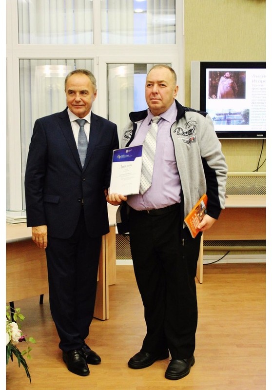 Руководителю «Литклуба Трудовая» В.Б. Броудо диплом Лауреата Премии Губернатора Московской области "Наше Подмосковье-2016" ( 2 премия) вручает Глава Дмитровского района Валерий Васильевич Гаврилов, Дмитровская торгово - промышленная палата, 25 ноября 2016 г.