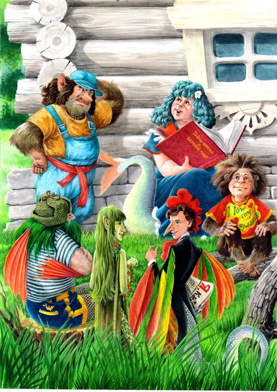 Народец в болоте подобрался с характером, злющий, хитрющий и воинственный. Каждый в свои избы болотные блага растаскивал, а болотные неприятности по чужим углам распихивал. Так они и жили: кричали, спорили, царапались. Может быть, в будущем поубивали бы друг друга, если бы не объединяла их одна страсть. Страсть заключалась в вечернем чтении книги бабушки Сиянки о тайнах вкусной и здоровой пищи (в скобках «Кулинарные рецепты»). Каждый вечер собиралась болотная нечисть у русалочьей избы и ждала бабушку Сиянку. Та выходила в чистом сарафане, рыбий хвост укладывала на завалинку, навешивала себе на нос очки. Слюнявила палец. Открывала заветную книгу. Начинала читать, как и из чего вкусную еду приготовить. Болотный люд с упоением слушал, слюни глотал.