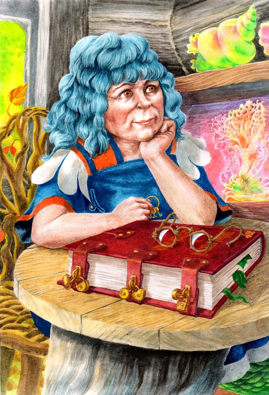 Бабушка Сиянка вышла в чистом сарафане. Рыбий хвост уложила на завалинку. Навесила на нос очки. Послюнявила палец. Открыла заветную книгу. Начала читать, как и из чего приготовить еду: