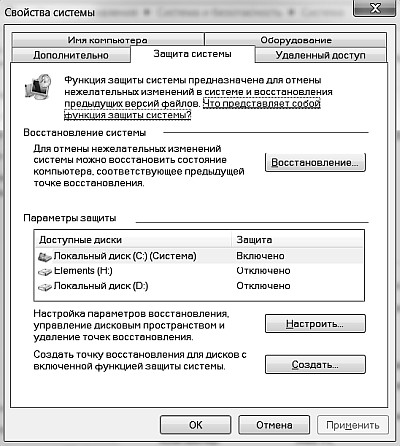 Для того чтобы создать точку восстановления системы, выполните команду Пуск ► Панель управления ► Система и безопасность ► Система ► Защита системыи в появившемся окне (рис. 1.7) нажмите кнопку Создать.