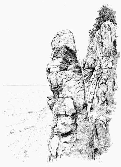 Anglesey.—The extreme flatness of the island perhaps gives an increased effect to its fine rock scenery about the Stacks, which will be respected by climbers as perhaps the earliest school of their art in Wales. An old description of the egg-takers here contains some interesting sentences which are not wholly devoid of point even for climbers of the present day. 'The gains bear no tolerable proportion to the danger incurred. The adventurers, having furnished themselves with every necessary implement, enter on the terrific undertaking. Two—for this is a trade in which co-partnership is absolutely necessary—take a station. He whose superior agility renders it eligible prepares for the rupestrian expedition. Dangerous employ! a slip of the foot or the hand would in an instant be fatal to both. To a stranger this occupation appears more dangerous than it really is. In persons habituated to bodily difficulty the nervous system becomes gradually braced, and the solids attain that state of rigidity which banishes irritability, while the mind, accustomed to danger, loses that timidity which frequently leads to the dreaded disaster. Fact demonstrates to what an extent difficulty and danger may be made subordinate to art and perseverance.'